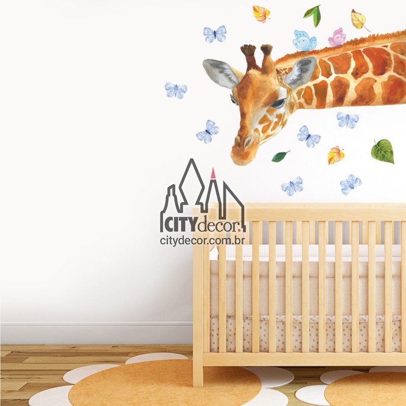 Decore o seu ambiente com o charme e a graça desta girafa com borboletas! A girafa e as borboletas são separadas para você montar a composição como preferir. Disponível na posição esquerda (como na foto principal) ou direita (espelhada)