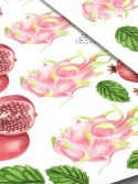 ➭ Tamanho: a romã tem 8,5 cm de diâmetro, a pitaya inteira mede 7,5 x 14 cm e as folhas têm de 5 a 7 cm de comprimento