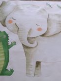 Elefante, leopardo, girafa, zebra, macaco e jacaré se divertem felizes entre as belas folhagens tropicais que compõem este adesivo de parede com o tema bichinhos do safári. Leve esses adoráveis bichinhos para o quartinho dos pequenos. Todos os itens são independentes, para você separar e montar como preferir, criando uma composição personalizada.
