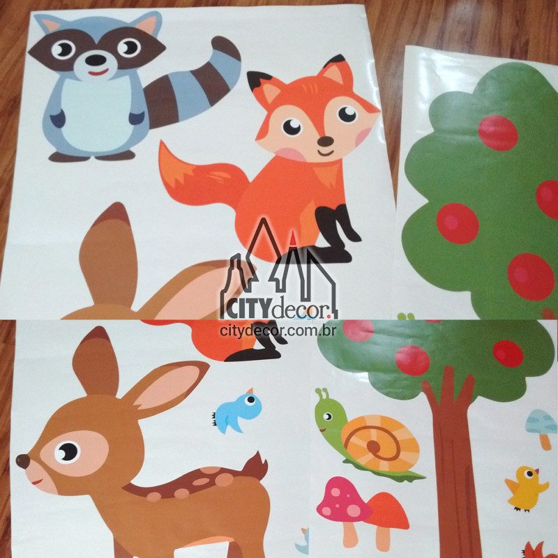 Decore o quartinho do seu bebê com o adesivo de parede infantil bichinhos silvestres! O kit contém uma árvore, uma raposa, um guaxinim, um veado, quatro passarinhos, um caracol e seis cogumelos que você pode montar na posição que quiser, criando uma decoração totalmente personalizada.