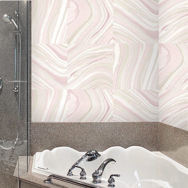 Adesivo papel de parede com imagem realística de revestimento feito de ágata. Cada quadrado mede 30 x 30 cm. Disponível nas cores vermelho, rosa e azul.