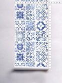 Papel de parede adesivo com estampa de azulejo português azul e branco, ideal para decoração de cozinha, banheiro, varanda, sala de jantar e outros. Cada azulejo mede 19 cm