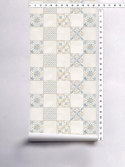 Papel de parede com estampa de azulejo rústico em tons de areia, azul e amarelo. Ideal para decoração de cozinha, área gourmet, varanda, banheiro e lavabo. Cada azulejo mede 12,5 cm