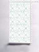 Papel de parede adesivo com estampa de azulejo em tons de azul e branco, ideal para decoração de cozinha, banheiro, varanda, sala de jantar e outros. Cada azulejo com o desenho completo (4 círculos juntos) mede 20 cm