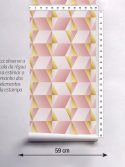 As formas geométricas com um lindo degradê de rosa claro e escuro e detalhes dourados desta estampa criam no ambiente um um visual moderno e feminino. Ideal para decoração de quarto, sala, banheiro, escritório etc.
