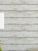 Papel de parede com estampa de ripas de madeira branca envelhecida, ideal para decoração de quarto, sala, escritório e demais ambientes. As ripas têm 11 cm de largura e podem ser escolhidas na posição vertical (em pé) ou horizontal