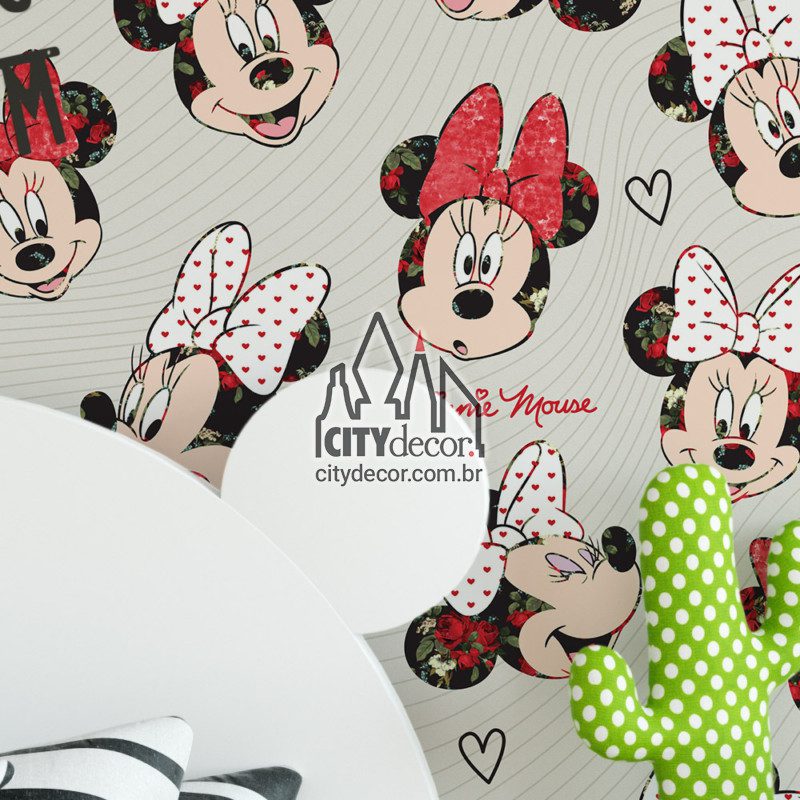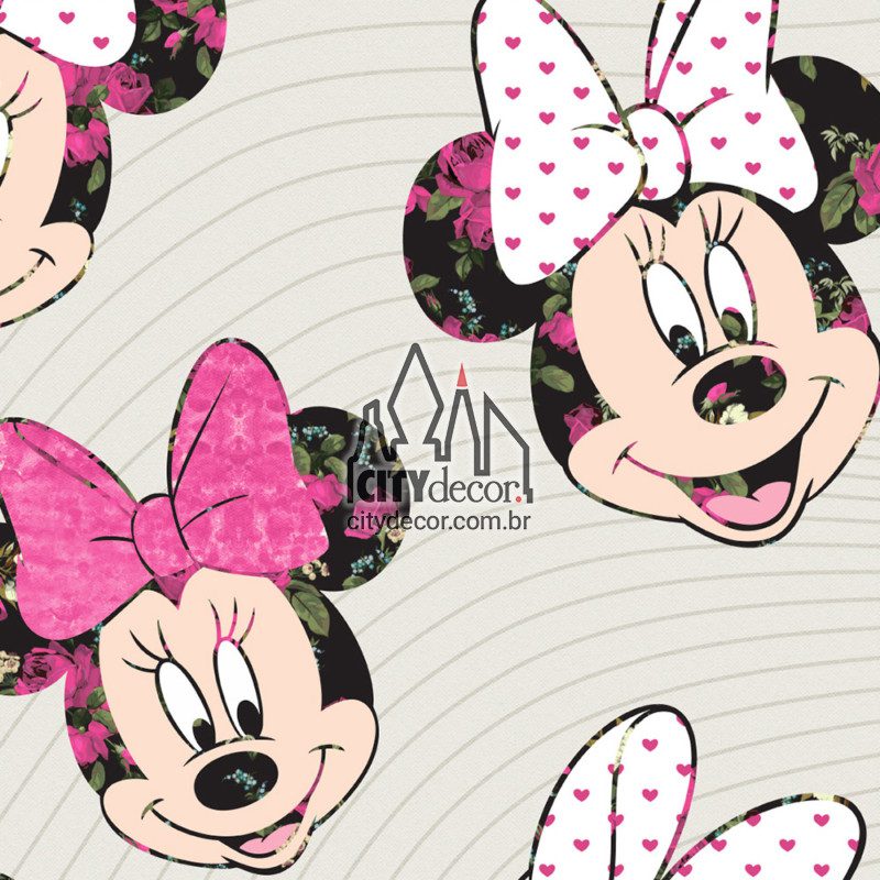 Com um design moderno, esta estampa da Minnie Mouse com detalhes florais fazendo caras e bocas é dedicada às fãs de todas as gerações. Ideal para decoração de quarto jovem ou infantil. Cada Minnie tem altura variável de 24 a 28 cm. Disponível nas versões com a Minnie vermelha ou rosa