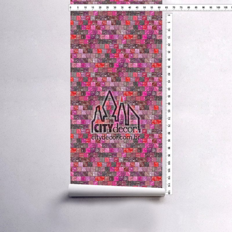 Adesivo papel de parede com estampa que imita pastilhas de vidro em tons de rosa e marrom, ideal para decoração de banheiro, lavabo, cozinha e outros ambientes. Cada pastilha mede 3 cm