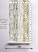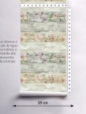 Papel de parede com estampa floral sobre ripas de madeira na posição horizontal ou vertical. Ideal para decorações em estilo clássico, romântico e vintage. As ripas de madeira têm 13 cm de largura.