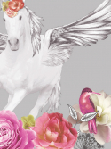 Renove suas paredes com este papel de parede de unicórnios com flores. Disponível nas opções com fundo cinza ou rosa claro, é ideal para decorar quarto, sala e outros ambientes. Os unicórnios medem 44 cm de uma asa a outra e 37 cm de altura; a rosa maior mede 16 cm