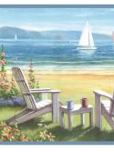 Faixa de parede com linda pintura de veleiros na praia e um jardim em primeiro plano. Suas cores suaves combinam com todos os ambientes. Possui 18 cm de altura, em rolos de 1,20 metros de comprimento, com encaixe perfeito da imagem nos pontos de emenda. Compre apenas a quantidade que precisar e montadas, as faixas parecem uma única peça contínua.