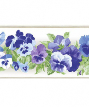 Faixa de parede com tema floral de pintura craquelê de hortênsias sobre madeira. Possui 18 cm de altura, em rolos de 1,20 metros de comprimento, com encaixe perfeito da imagem nos pontos de emenda. Compre apenas a quantidade que precisar e montadas, as faixas parecem uma única peça contínua.