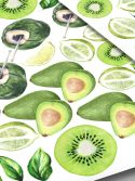 Transforme seu ambiente em minutos com este kit adesivo de parede de frutas verdes! Ideal para a decoração de cozinha, banheiro, área de serviço entre outros. Em paredes brancas ou coloridas, estes adesivos de frutas verdes vão deixar sua decoração alegre e tropical. Experimente aplicá-los aleatoriamente, distribuídos em toda a superfície como se fosse um papel de parede ou aplicar em círculos, linhas ou formatos de sua preferência. Dica: para um efeito papel de parede, corte ao meio os adesivos que serão aplicados nos cantos e rodapés.