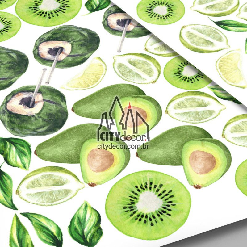 ➭ Conteúdo do kit: 112 peças incluindo kiwis, abacates, limões, cocos e folhinhas verdes, com cobertura de 3 m² aproximadamente utilizando espaçamento semelhante à foto (entre 15 e 20 cm)